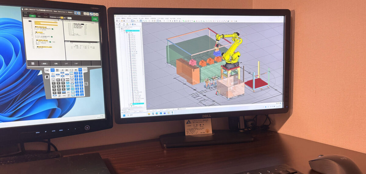 当社は、FANUCロボットを中心としたレイアウト検討・オフラインシミュレーション、プログラム作成、ティーチング、艤装、立ち上げ、保全対応(グリス交換等)を専門としており、新規導入から既存設備の改造まで幅広く対応しています。